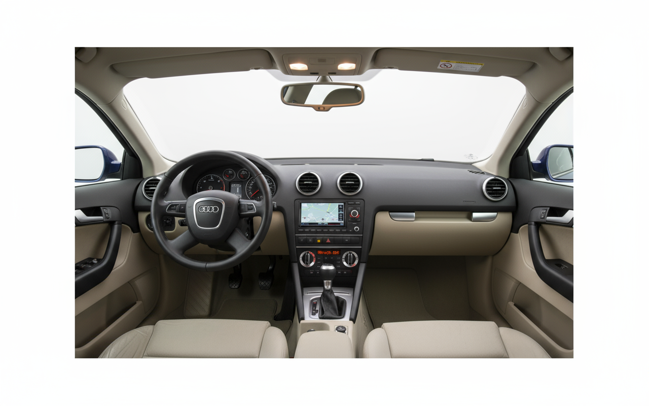Под классической внешностью этот A3 скрывал передовые для своего времени технологии. Сердце машины, его дизельный двигатель с системой впрыска Common Rail и турбокомпрессором с изменяемой геометрией, был инженерным шедевром, который достигал исключительной производительности при удивительно низком расходе топлива, чему способствовала эффективная система Start-Stop. Электрический усилитель руля, который становился жестче с увеличением скорости, обеспечивал изысканную точность как в городе, так и на шоссе. Это было доказательством того, что инновации не всегда нуждаются в больших экранах, а могут ощущаться в эффективности и отклике автомобиля.