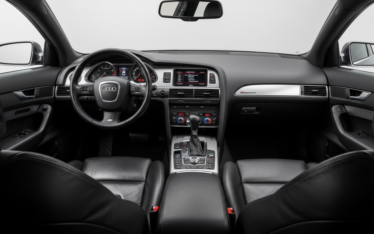 Его дизайн — это упражнение в сдержанности и спортивной элегантности. На первый взгляд, его можно принять за хорошо оснащенный A6, но детали выдают его истинную природу: решетка Singleframe с вертикальными ламелями, светодиодные дневные ходовые огни (пионерские для своего времени), корпуса зеркал из алюминия, 18-дюймовые диски и, прежде всего, четыре овальных выхлопных патрубка. Это эстетика, которой не нужно кричать, чтобы ее уважали. Внутри та же история: превосходное качество Audi сочетается со спортивными сиденьями из кожи и алькантары, которые обнимают тело, создавая атмосферу роскоши и сосредоточенности, идеальную для долгих поездок на головокружительных скоростях.
