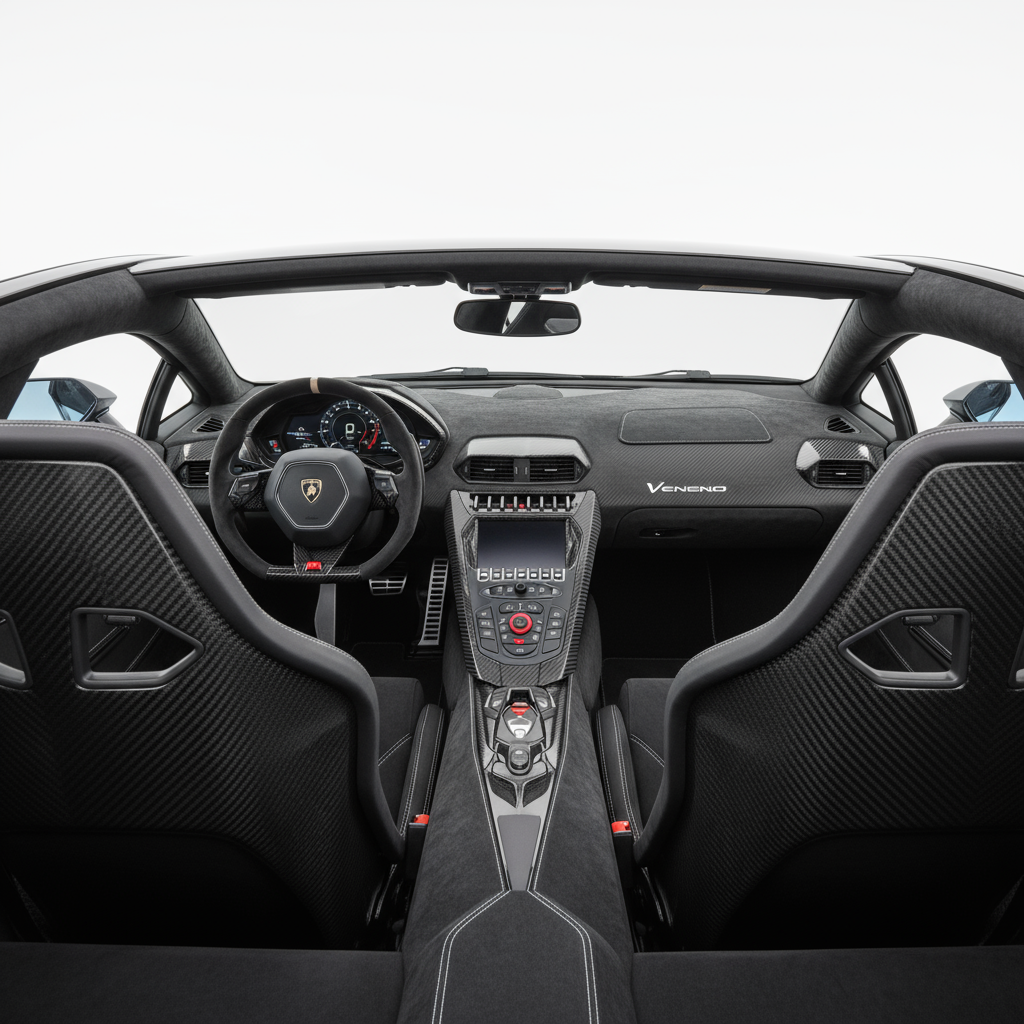 Технология Veneno сосредоточена на легкости и чистой производительности. Его сердце — это великолепный атмосферный двигатель V12, ода классической инженерии, доведенной до крайности. Все шасси-монокок и кузов изготовлены из полимеров, армированных углеродным волокном (CFRP), — техники, которой Lamborghini владеет в совершенстве. Мощность управляется через очень быструю, но резкую 7-ступенчатую автоматическую коробку передач ISR и систему полного привода, гарантируя, что каждая из 700 лошадиных сил передается на асфальт с сокрушительной эффективностью.