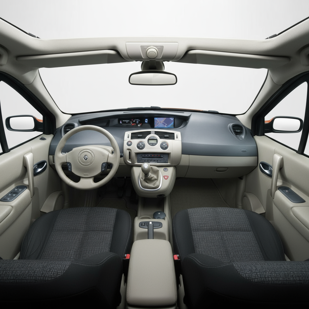 Дизайн Renault Scenic 2003 года является ярким примером эстетики минивэнов начала 2000-х годов. Его линии мягкие и округлые, стремящиеся максимально увеличить внутреннее пространство и освещенность. 5-дверный кузов и значительная высота придают ему прочное, но дружелюбное присутствие. Интерьер с его функциональной приборной панелью и расположением органов управления приоритезирует эргономику и обзорность. Хотя это не автомобиль, стремящийся к зрелищности, его дизайн вневременной и практичный, ориентированный на семейную жизнь.