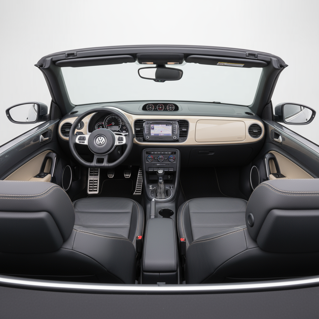 Дизайн Volkswagen Beetle Cabrio R-Line — это современная и мускулистая переинтерпретация классического «Жука». Его плавные и округлые линии сочетаются со спортивными деталями пакета R-Line, такими как специальные бамперы и 18-дюймовые диски, которые придают ему более агрессивный и современный вид. Элегантно складывающийся тканевый мягкий верх сохраняет культовый силуэт модели, а фары и задние фонари с современным оттенком подчеркивают его индивидуальность. Интерьер, рассчитанный на четырех пассажиров, сохраняет ретро-сущность с чистой и функциональной приборной панелью, но включает в себя качественные и технологические элементы, которые помещают его в 21 век. Каждая деталь, от материалов до расположения элементов управления, продумана для создания уютной и неповторимой атмосферы.