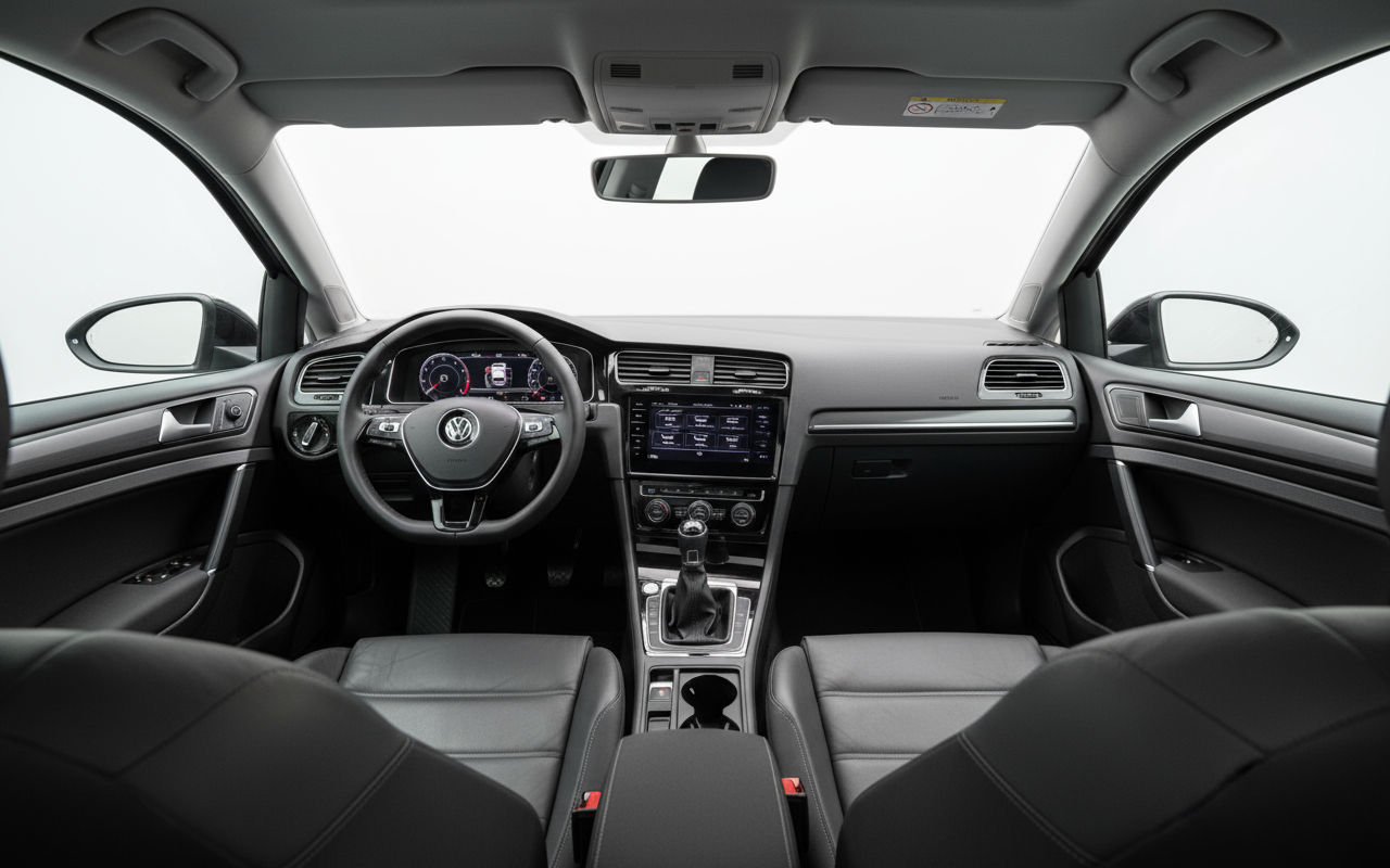 Дизайн Volkswagen Golf 5p Sport R-Line 2017 года является эволюцией классической эстетики Golf, с спортивным штрихом, который его отличает. Чистые и вневременные линии подчеркнуты специфическими элементами пакета R-Line, такими как более агрессивные бамперы, боковые юбки и 17-дюймовые диски с шинами 225/45 R17. 5-дверный кузов длиной 4258 мм и шириной 1790 мм обеспечивает компактное, но прочное присутствие. Внутри ощущается качество материалов и отделки, с функциональным и эргономичным дизайном, который ставит во главу угла комфорт и простоту использования. Спортивные сиденья и специфические детали R-Line способствуют созданию более динамичной и эксклюзивной атмосферы, не отказываясь от характерной для Volkswagen сдержанности.
