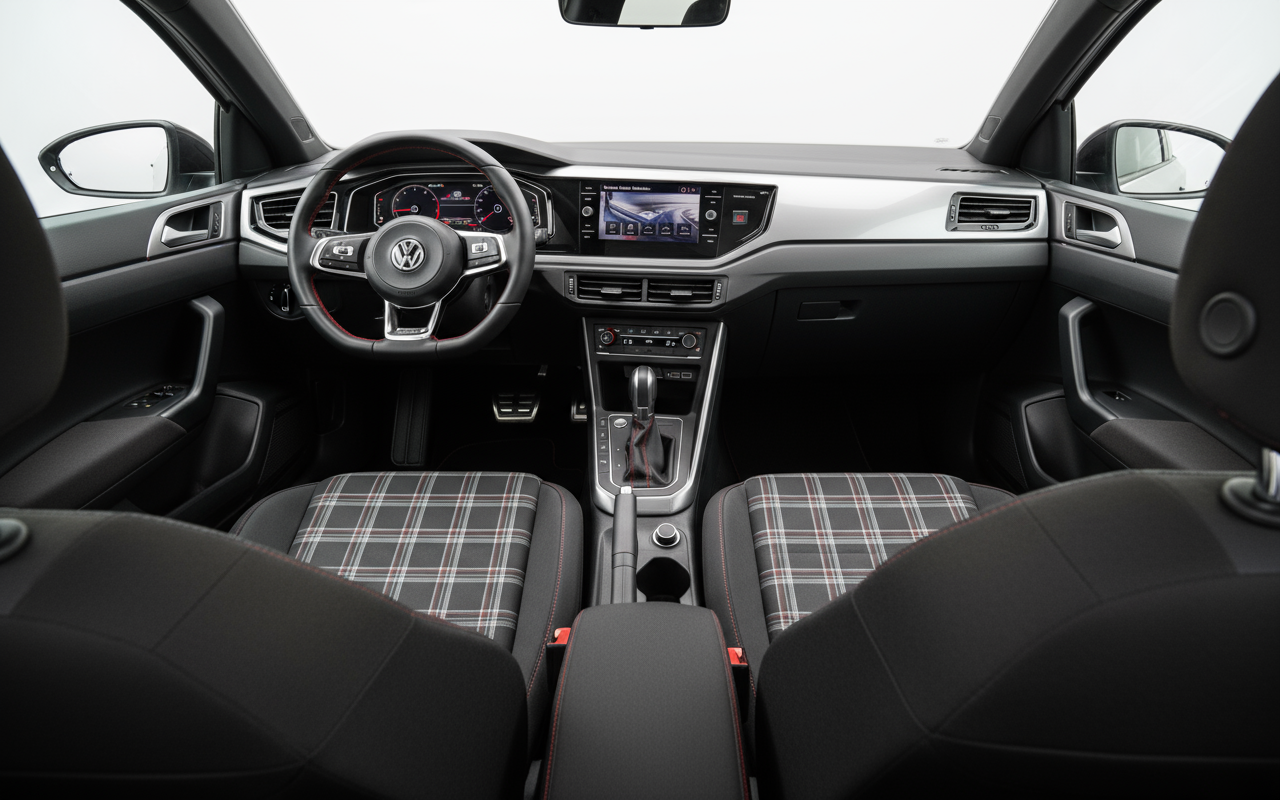 Дизайн Polo GTI — это слияние элегантности и агрессивности. Его острые линии и низкая посадка придают ему внушительный вид. Отличительные детали GTI, такие как решетка радиатора с характерной красной линией, спортивные бамперы и 17-дюймовые диски, не оставляют сомнений в его характере. Внутри спортивные сиденья с клетчатой обивкой, кожаный многофункциональный руль и алюминиевые педали создают атмосферу, располагающую к вождению. Каждый элемент продуман для усиления спортивного опыта, не забывая о функциональности и комфорте, ожидаемых от Volkswagen.