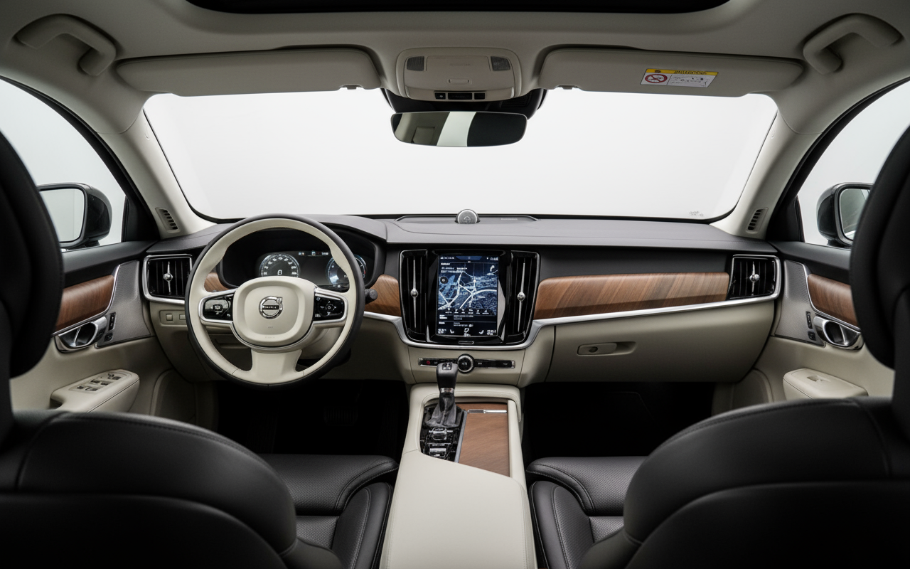 Дизайн Volvo S90 — это заявление о намерениях. Его чистые и элегантные линии в сочетании с внушительной передней решеткой и светодиодными фарами с характерным «Молотом Тора» придают ему безошибочное присутствие. Версия R-Design добавляет спортивные детали, такие как специальные бамперы и 18-дюймовые диски (245/45 R18), которые подчеркивают его динамичный характер, не впадая в показную роскошь. Интерьер — это святилище скандинавского дизайна, с высококачественными материалами и интуитивно понятной компоновкой, которая приоритезирует эргономику и благополучие пассажиров. Каждая деталь продумана для создания атмосферы сдержанной и функциональной роскоши.